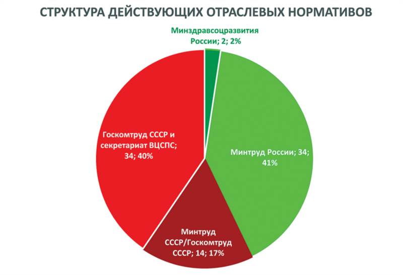 Нормирование труда проводится по советским методичкам, принятым Минтруда СССР, Госкомтруда СССР и (!) секретариатом Всесоюзного Центрального совета профсоюзов СССР, а также по методичкам Минздравсоцразвития России и Минтруда России. При этом советские методички нормируют 57% работ123 (рисунок 2.2). Затраты, связанные с управлением и обслуживанием производства и связанные с управлением деятельностью организации, согласовываются военным представительством как процент от фонда оплаты труда (накладные расходы). В ситуации переразмеренности активов доля накладных расходов может составлять сотни процентов. При этом объем согласованных накладных расходов будет тем больше, чем больше у предприятия зданий и сооружений, чем ниже энергоэффективность, чем больше непроизводственного персонала и т.п. В результате ежегодного согласования трудоёмкости по советско-российским методичкам зона неопределённости постоянно возрастает.