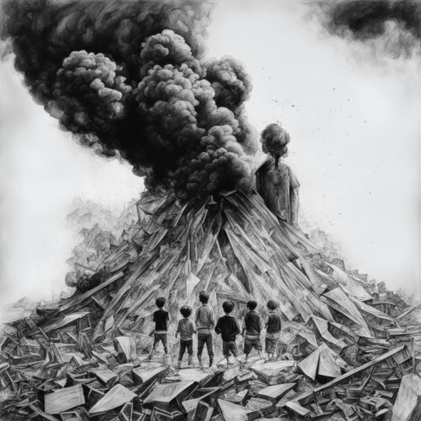 Тысячи детей столпились вокруг места бедствия. Некоторые плакали, но большинство стояли молча, удручённо наблюдая за действиями пожарных роботов, что нависли над горой стекла и поливали её прозрачной жидкостью.