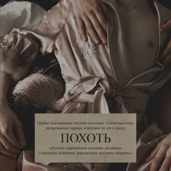 Друзья мои, я открываю новый цикл,Своих стихов и творчества, вот и готов артикул.Про семь грехов, что смертными назвали,Уверен, что про это вы слыхали.И начинается наш цикл,С того, что похотью зовётся.Он будет первым в этом списке.Его начнём мы изучать,Чтобы получше понимать,И более не совершать.Итак, грех первый – это похоть,Сие есть страстное желание.И не обуздано оно,Утех всех плотских состояний.Стремленье неумеренных страстей,И вожделенья искушенье.Грязь похоти в раба готовит человека,Чтобы служил он вечно сатане,Своим искусам не давал отпора,Любовь искал всегда на стороне.Не обязательно, на первом месте блуд,Но также жажда денег или власти.И чтобы выдержать вас с эдакой напастью,Одно с другим, не видеть никогда,Творите только добрые дела!Работайте побольше над собой,Соблазны прочь гоните от себя метлой,Старайтесь жить в согласии с Богом,Любовь и радость лишь в семье будет залогом!Вот вам такой ответ,Составил я на склоне лет!В нём истина заключена,И путь для исправления!И если дьявол искушает вас,Склоняя к совершению греха,Та помощь есть только у Бога,Просите Господа, вот верная дорога!Ну что, друзья, мой первый стих окончен,Советы всем даны, решать же только вам!Куда и с кем идти, в какой остаться яме!Встречаться с Богом, или с дьяволом в бедламе!