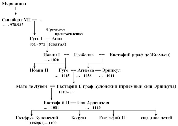 Cхема 1. Часть генеалогического древа Годфруа Булонского /12/