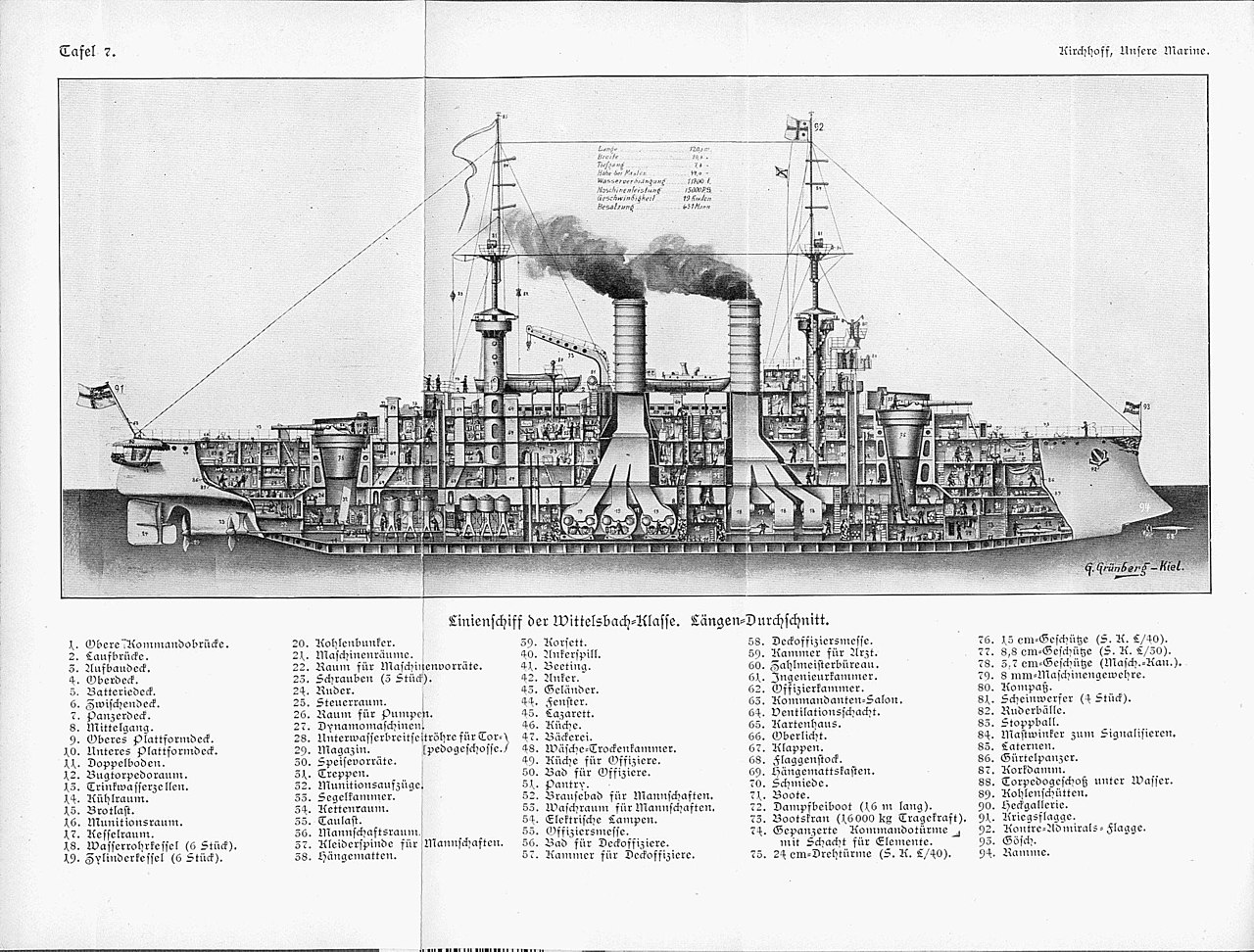 Броненосцы типа «Виттельсбах». Продольный срез.