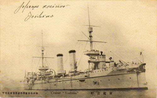 И отряд из четырехбашенного угловатого броненосца и пяти крейсеров, который обрел внезапное усиление, взял курс на родную базу, и вскоре увидели два дозорных японских крейсера.