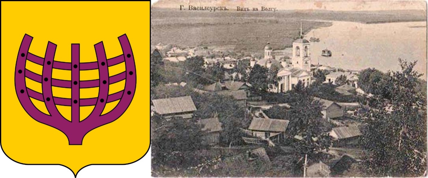 Герб Васильсурска и Старый Васильсурск. Вид на Волгу.