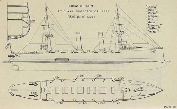 Схема крейсера типа «Эклипс» к которому принадлежал «Тэлбот» («Диана» была заложена первой)