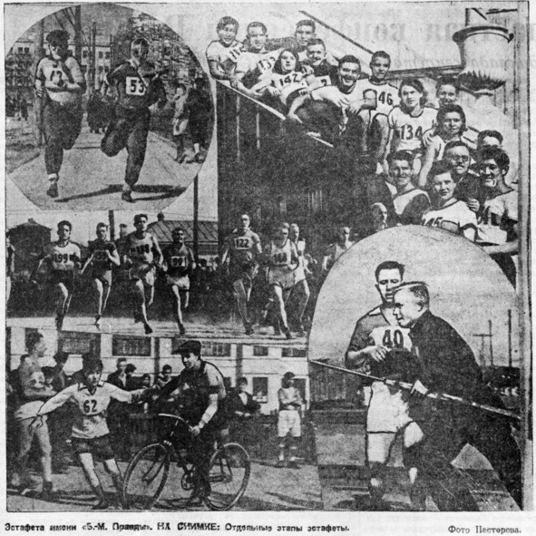 В эстафете участвовало около 200 физкультурников из 17 команд. Эстафета имела 11 этапов, из которых 2 женских, 2 военизированых и велосипедный. В 11 часов у клуба «Динамо» начали собираться команды. Организованно, с песнями, со своими знамёнами идут они к месту сбора. После развода по этапам в 1 час 30 минут был дан старт эстафеты. Первое место заняла команда «Динамо», второе место «Спартак», третье место «Медик»609.