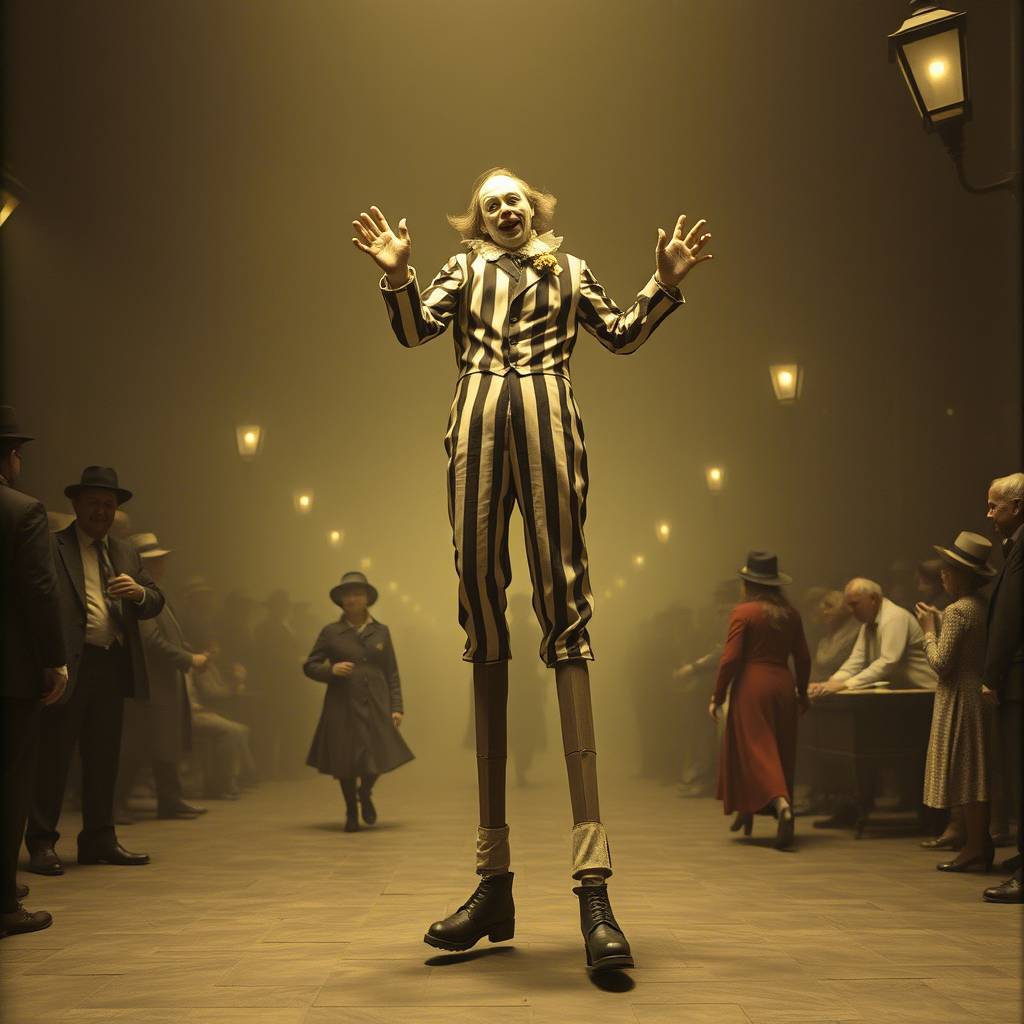 Осень окутала Петербург серым покрывалом тумана, и вечерние огни, отражаясь в лужах, создавали иллюзию бесконечного мира. Грустный мим, с белым лицом и в черном костюме в вертикальную белую как его лицо полоску – которая лишь подчеркивала его худобу, медленно шагал по пустынному парку, погруженный в печальные мысли. Он жил здесь уже долго, подрабатывая уличным артистом. За его выступления платили немного, но это было больше, чем когда он пытался устроиться грузчиком – работодатель не хотел платить за воображаемые ящики, которые мим так старательно носил.