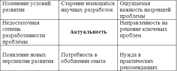 Актуальность исследования определяется потребностями конкретной области деятельности или научного знания и проявляется в степени разработанности проблемы. Различают актуальность в теоретическом и в прикладном (практическом) отношениях.