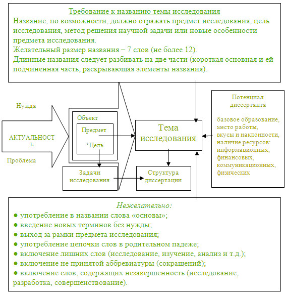 Следует заметить, что все вышеприведенные требования носят рекомендательный характер, поскольку исследование выполняется автором «единолично» и жесткие рамки по формулированию темы исследования официально не предусмотрены.