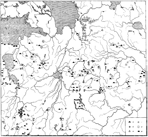 Весь. Летописец называет местом расселения Веси71 треугольник озер Ладожское, Онежское и Белое. Главным городом веси в летописях назван город Белоозеро72. Однако, в рассматриваемое нами время, наибольшая концентрация могильников, которые и могут быть отнесены к веси, приходится на юго-восточное побережье Ладожского озера, а это указывает на то, что основным районом проживання веси была именно эта территория, а отнюдь не Белое Озеро.
