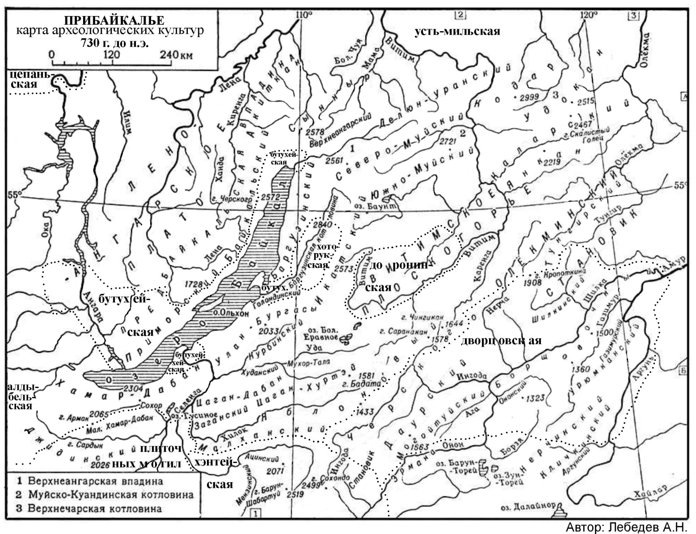 Рис.5. Карта археологических культур Прибайкалья 730 г. до н.э.