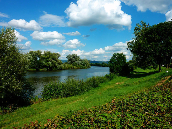 Белые пятна по синему небу.