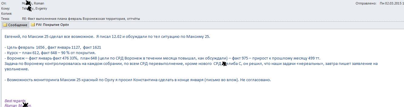 Не могу не прокомментировать ситуацию связанную с СРД Желамовым Степаном (г.Елец), т.к. если просто смотреть на переписку – можно сделать неверный вывод о неадекватности супервайзера и бездействии ASM. От тебя, почему то нет никаких комментарий после письма Галины.