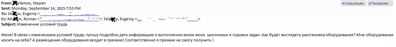 Через месяц тишины, я написал ещё раз т.к. чувствовал я себя отвратительно. Мне было противно все и я сам. Было ощущение, что я измазался в дерьме. Я думал только о том, как я вообще влез в эту спираль негатива. На каком этапе нужно было просто уйти и не искать справедливость. Но уйти, значит признать поражение!? Или уйти – будет значит быть выше!? Не знаю, не знаю! Что я знал точно, что никаких выплат не будет, но просто молчать и притвориться, что всё в порядке было невозможно. Линия невозврата была пройдена. Я прекрасно понимал, и я бы так действовал сам, что сейчас чуть сделают паузу, типа эмоции улягутся, а потом, подготовившись, решат окончательно вопрос. И я буду просто уволен, а может ещё и со статьёй какой, у них же юристы и т.д. Я решил так, кто задаёт вопросы – тот лидирует и у того инициатива. Как то нужно было сдвигать вопрос и немного корректного блефа не повредит.