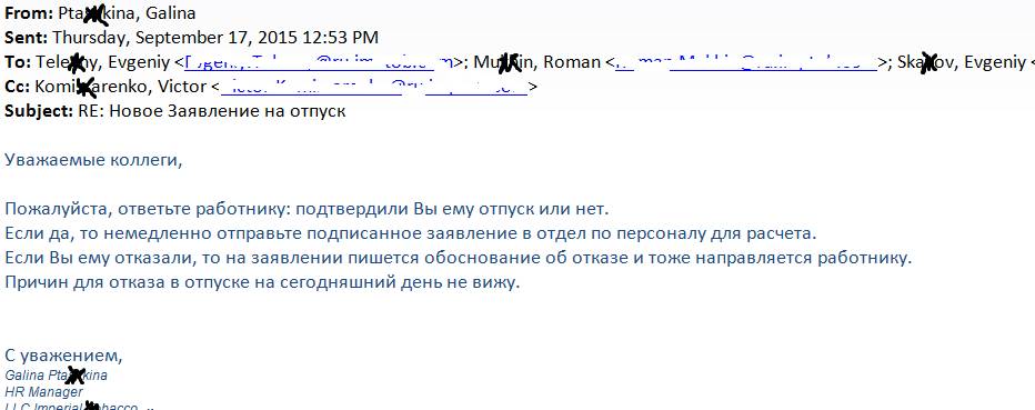 Через две недели я решил написать напоминалку руководителю Службы персонала: