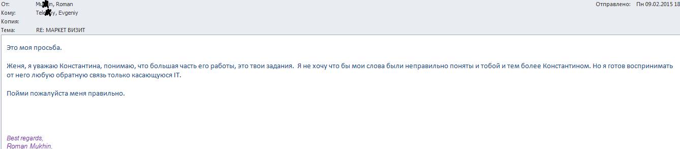 Отдельно Евгений позвонил и сообщил, что планирует выслать на недельку, мне на помощь в подготовке к аудиту, специалиста IT МаЖарова Константина. «Погоди, погоди… То есть ты планируешь выслать специалиста по компьютерным программам выслать в помощь в подготовке территории? Евгений, я тебя правильно понял???» – я был вне себя. «Роман, ну у него есть хороший опыт встречи в Москве разных проверок», – уже не уверенно выдал Евгений. «Евгений, а ничего, что данный организм работал в полях только торговым представителем!!! И ты считаешь, что он может помочь территориальному менеджеру, которого вы когда то выбирали 3 месяца – с обязательным минимум 5 летним опытом руководства от 100 человек, опытом управления территорией от 5 областей, и так далее по списку компетенций ASM? Ты издеваешься?». Вдогонку к разговору, я решил написать в письме, что бы таких дурных мыслей не возникало. Я понимал, что Евгений хочет просто поставить свои глаза на место будущих событий и добавить ещё больше нервозности в процесс подготовки.