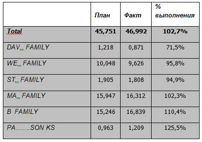 Как ни странно, очень хорошо себя показали города, на которые мы не делали особой ставки: Новосибирск, Казань, Екатеринбург, Самара, Нижний Новгород – там перевыполнены цели по дистрибуции и % от общего объема продаж весьма высокий.