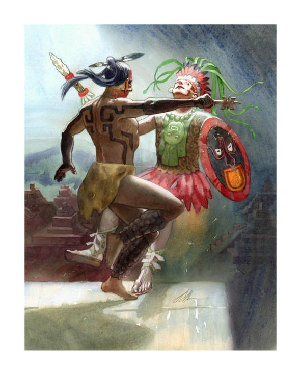 Вождь чичимеков в несколько прыжков взлетел к вершине пирамиды. Все остальные застыли. Предстоял поединок вождей-полководцев: Черного Орла и верховного правителя Города богов! Это были достойные противники!