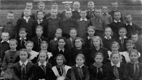 В мой четвертый класс набралось 38 учеников. В школу семилетку ходили дети из всех близлежащих полукругом деревень: Большая Гора, Санниковы, Зоновы, до Курагиных, но основную часть учеников составляли дети рабочих и служащих завода №32.