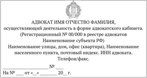 указание на форму осуществления адвокатской деятельности (адвокатский кабинет),