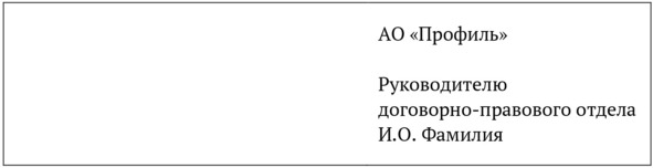 При адресовании письма руководителю структурного подразделения указывается в именительном падеже наименование организации, ниже – в дательном падеже – наименование должности руководителя, включающее наименование структурного подразделения, фамилию, инициалы.