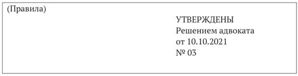 Наименование вида документа указывается на всех документах, за исключением деловых (служебных) писем и располагается под реквизитами адвоката.