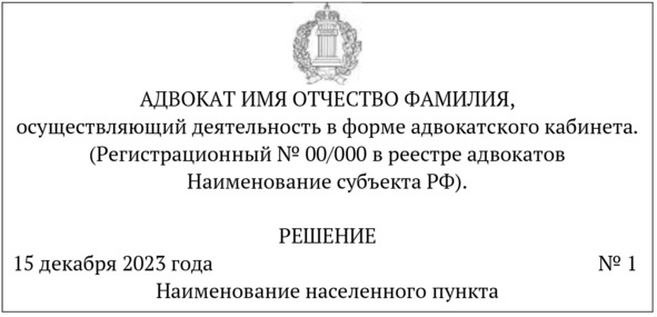 В нашем случае наименование адвокатского образования и имя адвоката образуют одного автора, что прослеживается в таких документах как ордер адвоката или адвокатский запрос.