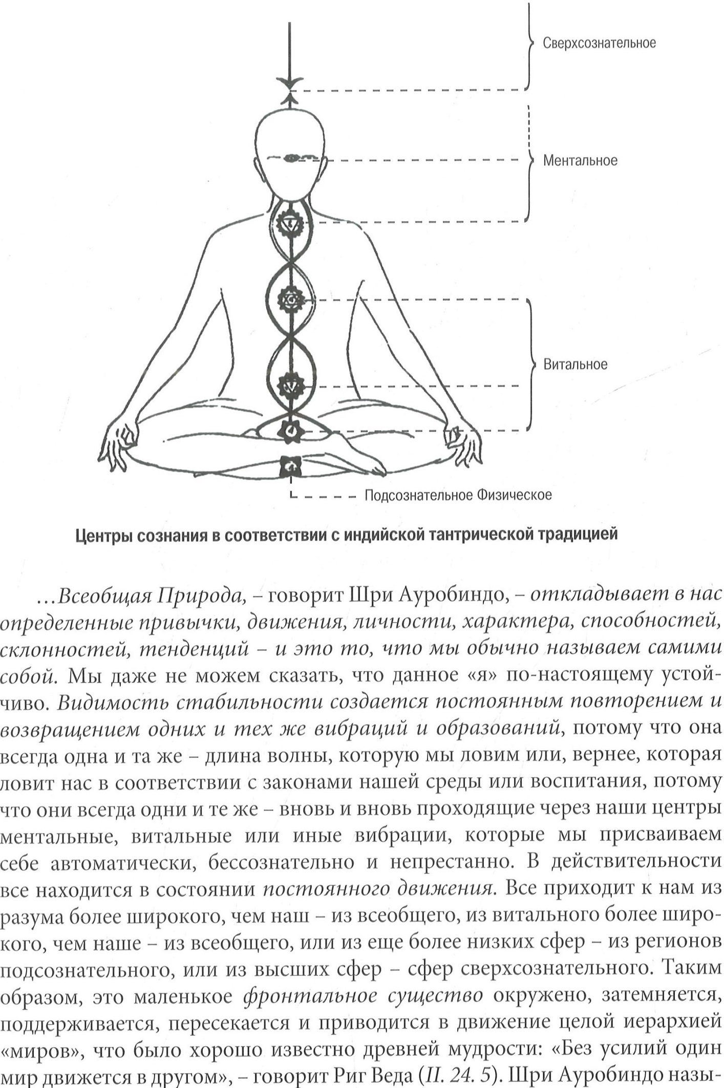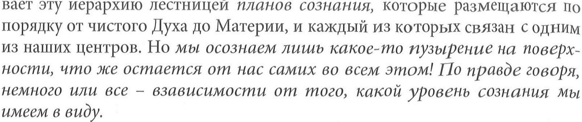 Шри Ауробиндо называет эту иерархию лестницей планов сознания, которые размещаются по порядку от чистого Духа до Материи и каждый из которых связан с одним из наших энерго-информационных и витальных центров.