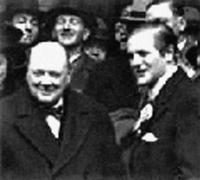 Как ни удивительно, на этом месте мог стоять Рандолф Черчилль, родной сын Уинстона Черчилля! Намек на это дал сам Ханфштенгль, который в своей книге «Мой друг Адольф, мой враг Гитлер» написал: «Превращение Гитлера в фигуру национального и международного масштаба породило одно из тех противостояний, которые так любимы историками, – конфронтацию (??? – А. О.) с сэром Уинстоном Черчиллем… Сэр Уинстон упоминает этот случай в своих мемуарах… Я весьма часто видел его сына Рандолфа в ходе наших предвыборных поездок. Я даже пару раз устраивал так, чтобы он путешествовал вместе с нами на самолете. Он сказал, что его отец собирается посетить Германию и нам следует организовать встречу. В апреле (1932 г. – А. О.) во время или сразу после президентской кампании я приземлился с Гитлером в мюнхенском аэропорту, и там меня ожидала телефонограмма от Рандолфа. Его семья с сопровождающими лицами остановилась в мюнхенском отеле “Континенталь” (а не в “Регина Палас”, сэра Уинстона подвела память[2]), и Рандолф приглашал меня к ним на ужин и надеялся, что я смогу привести с собой Гитлера, чтобы он встретился с его отцом. Я сказал ему, что сделаю, что смогу, но мы устали, нам нужно привести себя в порядок…» [94. С. 225]. Далее на трех страницах Ханфштенгль подробно описывает, как он уговаривал Гитлера встретиться с Черчиллем, но «Гитлер так и не появился. Он просто струсил…» [Там же. С. 226–228]. И дает этому объяснение: «Когда он сталкивался с человеком, равным ему по политическим способностям, в нем снова просыпался неуверенный буржуа». На этих же трех страницах Ханфштенгль описывает ужин с семьей У. Черчилля в отеле «Континенталь» и их беседу, во время которой Черчилль затронул ряд весьма серьезных вопросов, например, попросил: «Передайте своему боссу от меня, что антисемитизм может дать хороший толчок, но в качестве лозунга он не подойдет». Или: «Скажите мне, что ваш лидер думает о союзе между вашей страной, Францией и Англией?» Итак, в разгар избирательной кампании частное лицо из Англии (а на самом деле один из лидеров партии консерваторов!) У. Черчилль приезжает в Германию, причем не в Берлин, а именно в Мюнхен, где находится главный штаб национал-социалистической партии, причем в тот самый день, когда туда прилетел непрерывно разъезжавший в то время по Германии ее кандидат в канцлеры – Адольф Гитлер. Похоже, что встреча была согласована обеими сторонами, в том числе и через сына У. Черчилля Рандолфа, который по непонятной причине участвовал в германской избирательной кампании и даже летал с Гитлером в одном самолете. Тогда возникает несколько вопросов. Не затем ли приехал в Германию У. Черчилль, чтобы лично посмотреть на кандидата в канцлеры Германии Гитлера и даже побеседовать с ним? Не для того ли он передавал Гитлеру советы через Ханфштенгля, чтобы тот победил на выборах? Может быть, встреча и беседа Черчилля с Гитлером все же состоялась? Какое-то время я был уверен, что высокий человек справа на вышеупомянутом групповом снимке все-таки и есть Рандолф Черчилль. То есть Черчилль сначала послал своего сына для участия в избирательной кампании Гитлера, а затем сам приехал посмотреть на кандидата и побеседовать с ним. Ниже я привожу несколько фото Р. Черчилля в разные периоды его жизни, а также фото адъютанта Гитлера В. Брукнера, так как пилот Гитлера Ганс Баур в св