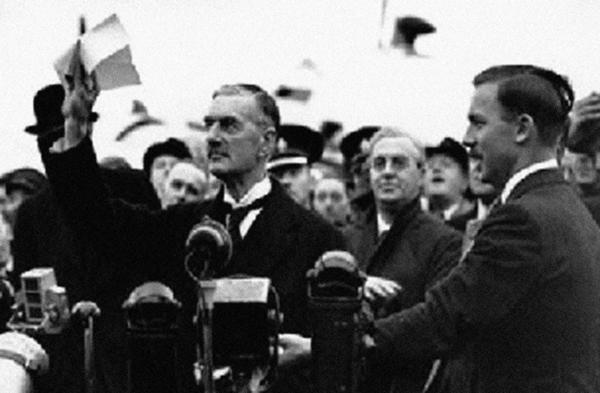 В тот же день, 30 сентября 1938 г., в Мюнхене была подписана англо-германская декларация: стороны заявляли, что отныне они никогда не будут воевать друг с другом. Именно листком с текстом этого коммюнике размахивал в Лондонском аэропорту Чемберлен, говоря: «Я привез вам мир!»