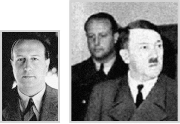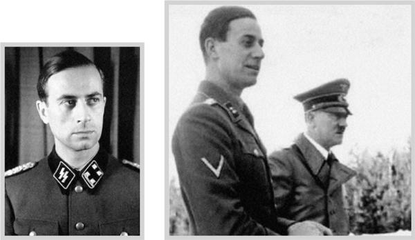 [1914–1995, офицер-ординарец Гитлера; в 1939 г. унтерштурмфюрер СС (лейтенант), с 1944 г. – оберштурмбанфюрер CC (подполковник); нет ни одного его фото или кинокадра, сделанного в Москве.]