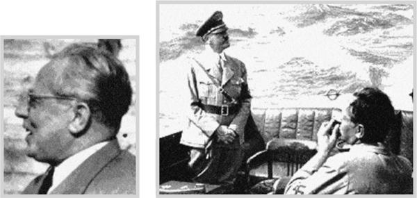 [Отто Вальтер Хевель, 1904–1945; личный сотрудник Гитлера, постоянный представитель министра иностранных дел Риббентропа при Гитлере, бригадефюрер СС, знаменосец во время «пивного путча» 1923 г., сидел с Гитлером в одной камере в Ландсбергской тюрьме, где осуществлял корректуру текста его книги «Майн кампф». По свидетельству Шпеера, Хевель был наиболее близким человеком к Гитлеру, «персона гратиссима». Его эмоциональная привязанность была очевидна всем окружающим. «С течением времени он установил с Гитлером особые отношения, напоминавшие отношения сына к отцу…» Не обнаружено ни одного фото или кинокадра с ним, сделанного в Москве.]