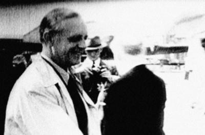 Хельмут Лаукс(?) (в шляпе) ведет съемку встречи Риббентропа на аэродроме в Москве 23 августа 1939 г.