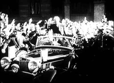 Если это происходит 24–25 августа 1939 г. в Берлине, то почему справа от стоящего в машине триумфатора Риббентропа сидит гауляйтер Восточной Пруссии Эрих Кох? Если же это происходит в Кенигсберге – столице Восточной Пруссии (откуда, кстати, делегация Риббентропа и вылетала в Москву 23 августа), то присутствие Коха абсолютно понятно – он встречает Риббентропа как хозяин региона либо разделяет с ним триумф как участник поездки в Москву. Но тогда почему же не выполнено полученное Риббентропом в воздухе указание Гитлера о смене курса его самолета и приземлении в Берлине? Сам Риббентроп в мемуарах упомянул, что была сделана кратковременная остановка в Кенигсберге, но о триумфальной встрече населения почему-то не сказал ни слова.