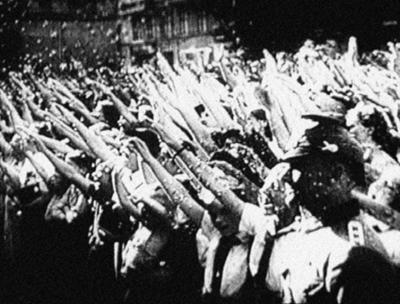 А вот еще один кадр – из немецкого киножурнала «Вохеншау» (аналога советского киножурнала «Новости дня»). На нем показана триумфальная встреча Риббентропа немцами после подписания пакта Риббентропа – Молотова. Все понятно: немцы радуются тому, что войны на два фронта не будет, более того – из России будут поступать в большом количестве зерно и нефтепродукты. Вопрос в том, где и когда произведена это съемка?