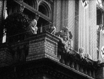 В Кенигсберге 24 августа 1939 г. Риббентроп (с поднятой рукой) на балконе, скорее всего, резиденции гауляйтера Восточной Пруссии Э. Коха