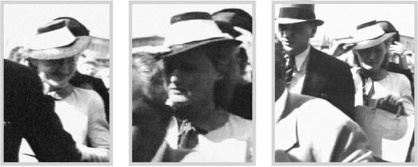 Ниже я привожу семь фотографий Евы Браун, а под ними три фрагмента из кадров кинохроники о проводах делегации Риббентропа в московском аэропорту, на которых запечатлена фройлен «Эдит Крюгер», весьма похожая на пассию фюрера (возраст, овал лица, форма носа, слегка асимметричный тяжеловатый подбородок, волосы, улыбчивость).