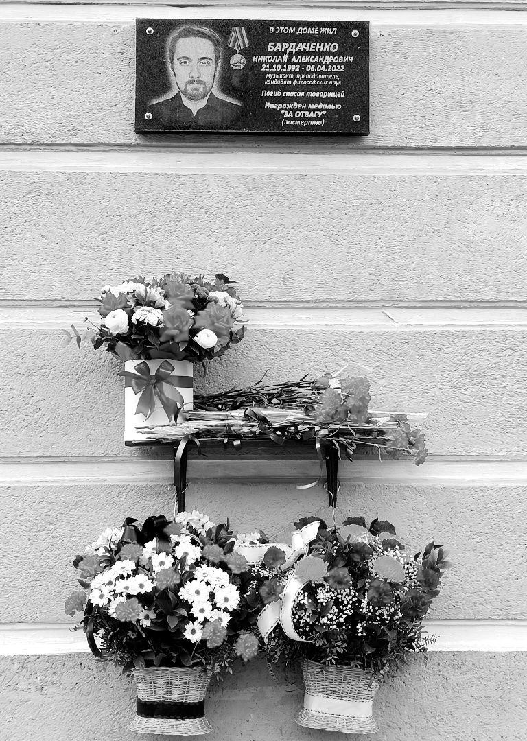 А в годовщину со дня героической гибели Николая Александровича, 6 апреля 2023 года, – прошла Торжественная церемония открытия Мемориальной доски на доме Н.А.Бардаченко и Творческий вечер его светлой памяти в стенах концертного зала Алчевской ДМШ №1.