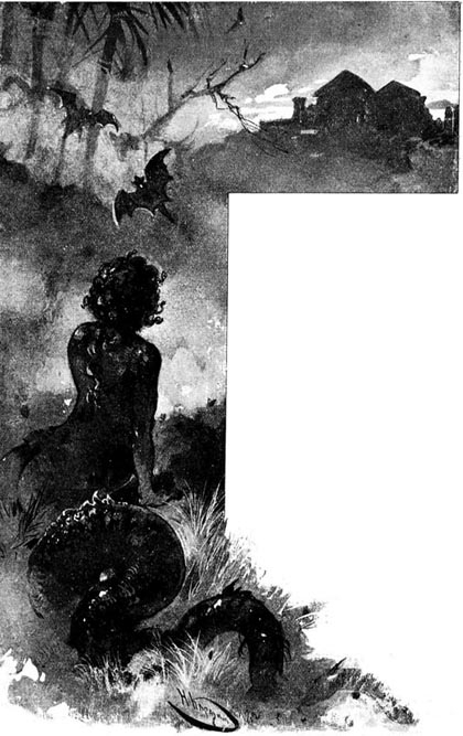 Между тем темная ночь опустилась на землю; всё кругом залила она своим мраком, под покровом которого тишина и сон водворились всюду. Только жалобные крики сов и филинов на высоких, старых деревьях вкруг зала нарушали ночное безмолвие…