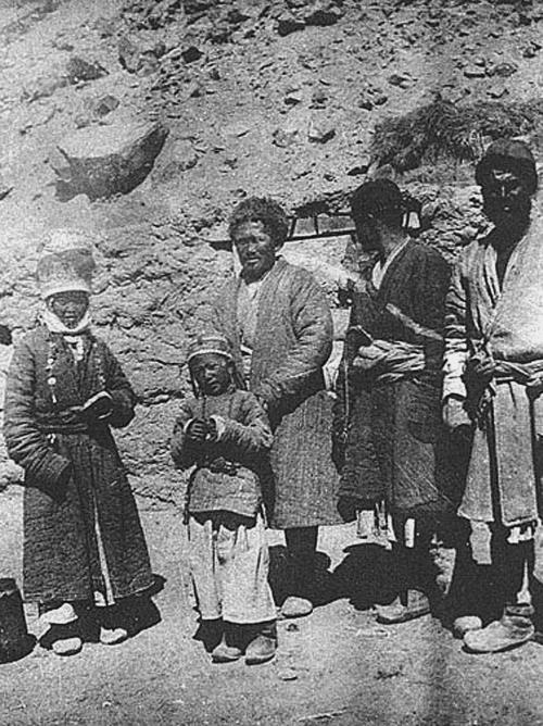 После часовой остановки мы продолжили путь по пологому склону долины. Повсюду виднелись тополиные рощи и абрикосовые сады; на возделанных полях зеленели пшеница и ячмень; земля орошалась многочисленными каналами; местность напоминала цветущий сельскохозяйственный оазис. В густой роще, где рядом с тополями и ивами росли фруктовые деревья, показалась уютная деревушка. Здесь нас ожидала толпа мужчин и женщин в ярких одеждах. Для экспедиции был отведен большой тенистый сад (баг). Мы поставили под деревьями палатки и впервые за многие недели с удовольствием прошлись по мягкой траве. В саду собрались любопытствующие деревенские жители, но вели они себя сдержанно, никто не осмеливался заглянуть внутрь палаток. Мы подарили старейшине часы, и старик, просияв от радости, тут же отблагодарил нас сочными дынями, персиками и грушами.