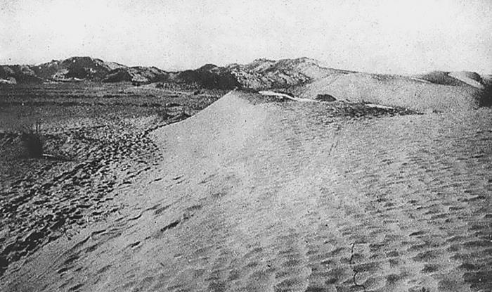11 октября. Оставив позади Санджу-базар, мы вышли на обширное плато, и перед нами открылись просторы южной границы Такламакана – безбрежной и выжженной солнцем пустыни. На северо-восток вела хорошо протоптанная караванами тропа. Равнина казалась совершенно безжизненной, как вдруг вдали появился одинокий всадник. Он спешился, стреножил лошадь и положил на раскаленный песок белый войлок, а сверху – несколько дынь. Всадник оказался бедным путешественником, который счел своим долгом поприветствовать гостей из других стран. Мы слезли с лошадей и с удовольствием отведали его дынь, приятно освежавших в палящий полдень. В свою очередь мы преподнесли ему охотничий нож.