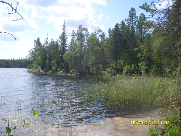 Маршрут движения – по М18, потом налево в сторону Поросозера, а там восточным крюком напрямик по лесу. Там дорога, конечно, местами сложная. Зато очень красивая в своих сосновых лесах, лесных озёрах. Можно остановиться на первых озёрах, есть там одна классная стоянка и если была бы лодка резинка, свободный денёк и желание насладиться красотами окружающего мира, то рекомендую. Но, несмотря на то, что сегодня первый день этого сезона мы уже экономим время и жалеем минуты-дни, поэтому на этом озере мы остановились, побродили, сфотографировались на новомодный фотоаппарат, выданный этой весной (чудо техника с кучей режимов съёмки, не боящаяся воды, что можно проводить съёмку под водой). Конечно же мы оценили здешнюю стоянку, но ППНка впереди, а логика проста – нужно проехать на максимально близкое расстояние или чуть дальше, чтобы убедиться, что ты доедешь и отработаешь точку. А за горой, где по правую руку находится ППН №373 био-индикаторной сети, если немного проехать в сторону пос. Гимол (по направлению, а так посёлок будет далековато!) есть озеро Сурьярви, на берегу которого мы каждый раз ночуем, ну или стараемся (уже третий раз).