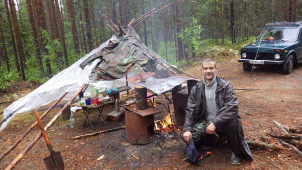 Вот сюда мы и стремились. Приехали, устроились, легли спать, тут дождь. Нормально, обычное начало экспедиции