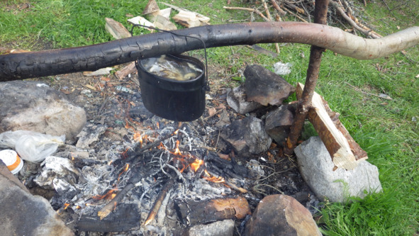 Володя, пользуясь моментом отправился изучать рыбную фауну. И со словами – «Тут рыбы нет!», сразу же вытащил щуку. Спустя десять минут, вытащил вторую. Я разгорелся тоже, но сколь не бросал блесну, не видел и поклёвки. Сварив гречку, Володя шумнул, я в некоторой опечаленности вышел с соседнего мыска, где по всем признакам должна была быть рыба, но…, а потом улыбнулся, рыбы поймано столько, сколько нужно, а значит и грустить не нужно. Выловлю я потом свою рыбину!!! Гречку съели на ура.