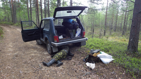 Вот скажем вчера (в пн.), обратный ход 1,7 км, чётко и глупо, а стоял на параллельной дороге. Конечно, нарушение техники безопасности в одиночку по лесам бродить, но это уже наше решение, где и как работать. Володя везёт, потом готовит ужин (поздний обед), везёт обратно. Около 4—5 часов откровенного маршрута РАН, перед этим ещё уточнение района работы прошлого года, заезд на усы и т. д.
