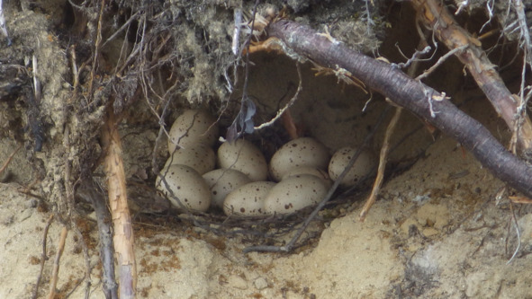 Через дорогу перелетела копалуха, с ней пять птенцов глухарят, мы остановили машину, чтобы сфотографировать. Мамаша стояла боком, подворачивая крыло, мол на меня отвлекайся, чтобы малые убежали. Пока птенцы забрались на бровку канавы, телепая между кустиков вереска и красноватых от накипного лишайника булыжников, она отвлекала опасность на себя. Молодец.