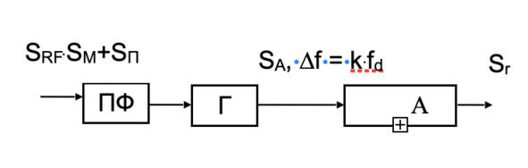 Можно предложенную методику использовать совместно с применением нескольких гетеродинов. Тогда полоса сигнала с одного гетеродина ∆f = k. fd должна быть фильтруема для того, чтобы на приемной стороне разделить по разным каналам сигналы, сгенерированные с разных гетеродинов.