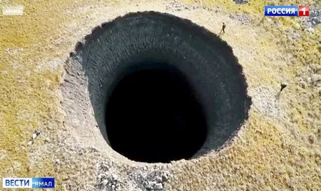 Рис.21. Воронка после «взрыва» метангидрата, https://www.techcult.ru/science/8721-na-yamale-najden-gigantskij-proval-v-zemle