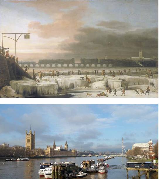 Рис.23. Один и тот же участок Темзы, Англия, зимой 1677 и зимой 2019 годов, https://www.higgypop.com/assets/588cea64cf059_1485630052_0.jpg