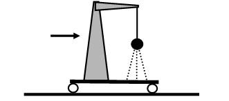 Задача 3. Металлический шар подвешен на мачте яхты, двигающейся вперед со скоростью 10 м/c. В какой точке платформы (а, б или в), изображенной на рис.1.3, следует ожидать падения сорвавшегося груза?