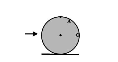 Задача 5. На рис.5 изображено колесо, катящееся, вправо со скоростью 10 м/с. Радиус колеса 1 м. Чему равна скорость движения точки А, расположенной на ободе, относительно точки на оси «О» колеса?